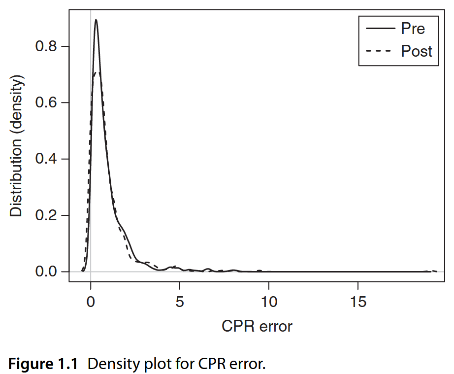Density plot for cpr.error. (Recall cpr is 0 if value is 0)