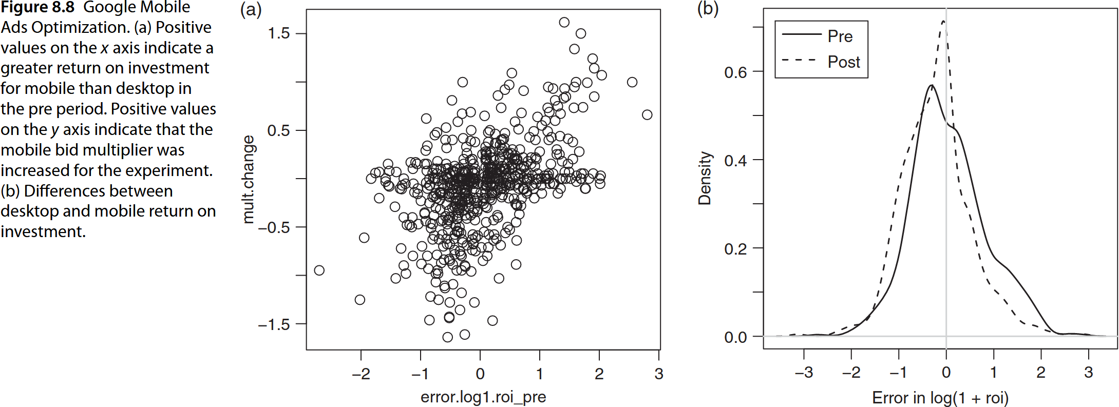 Error means error = log(1+m.roi) - log(1+d.roi) for pre/post experiment.