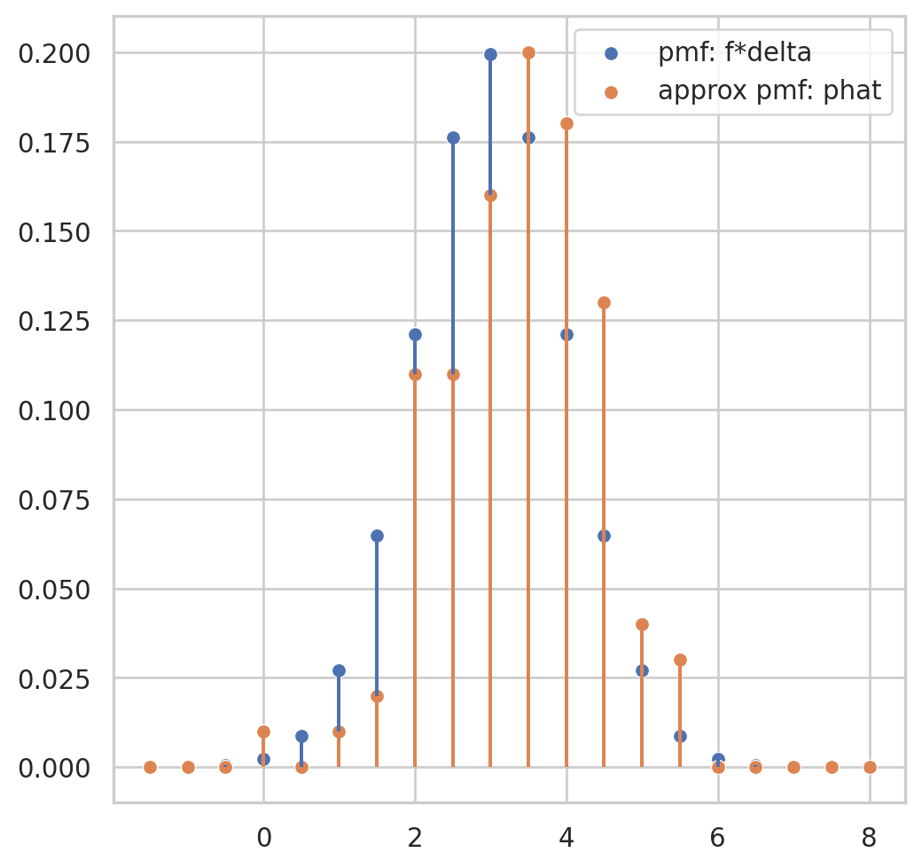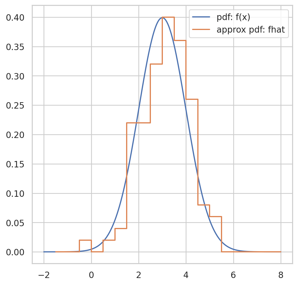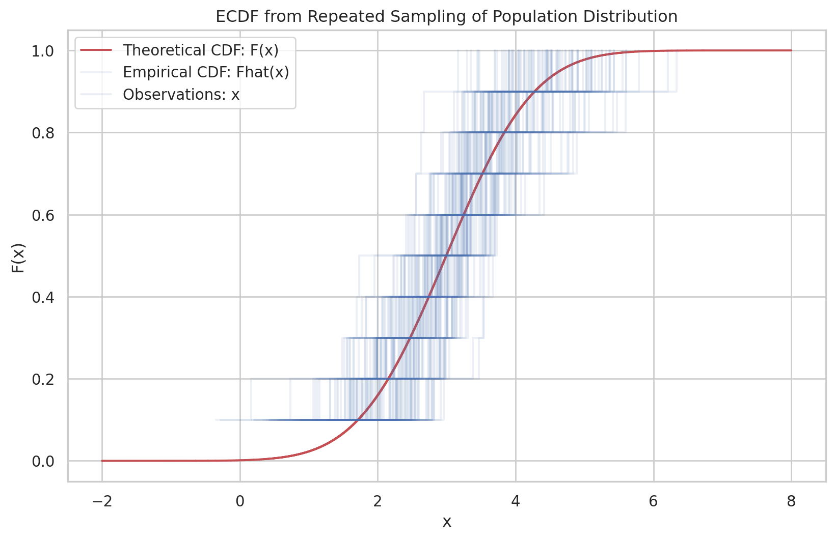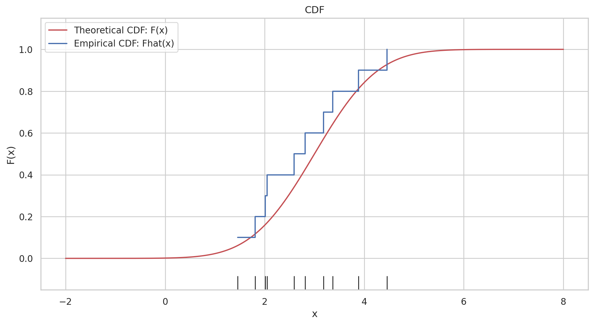 the empirical distribution function \(\hat{F}\) is defined to be the discrete distribution that puts probability \(1 / n\) on each value \(x_i, i=\) \(1,2, \cdots, n\). In other words, \(\hat{F}\) assigns to a set \(A\) in the sample space of \(x\) its empirical probability