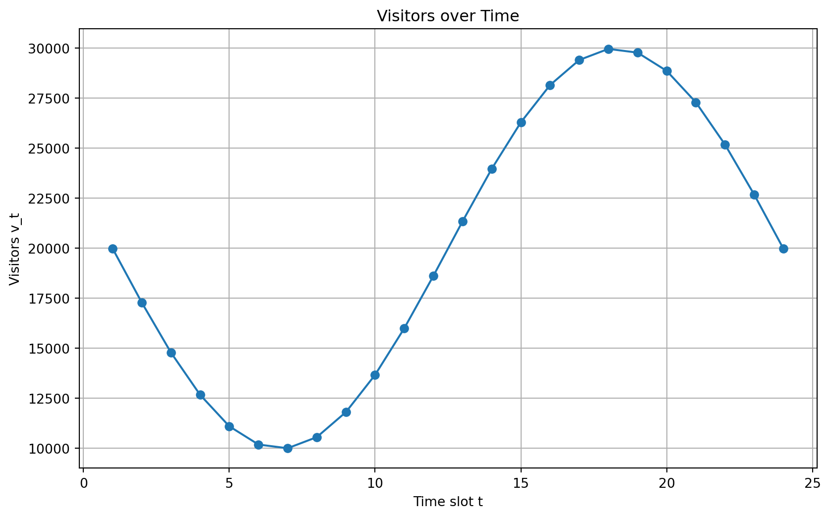 # Visitors over time: v_t ∈ R^T